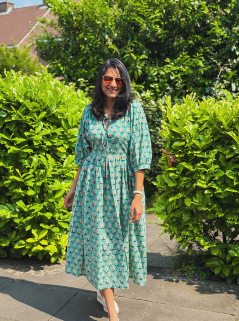 Goa Collection - Palm Green Hand block Dress