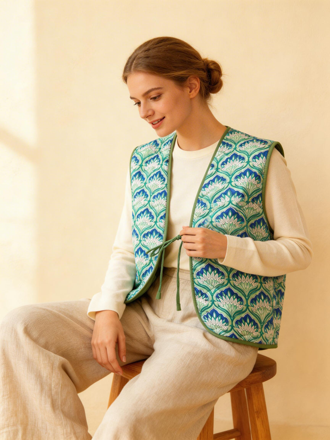 Made from breathable 100% cotton and softly quilted for gentle structure, these vests are designed for transitional dressing. Lightweight yet warm, expressive yet easy to wear, they bring texture, colour, and character to modern European wardrobes.